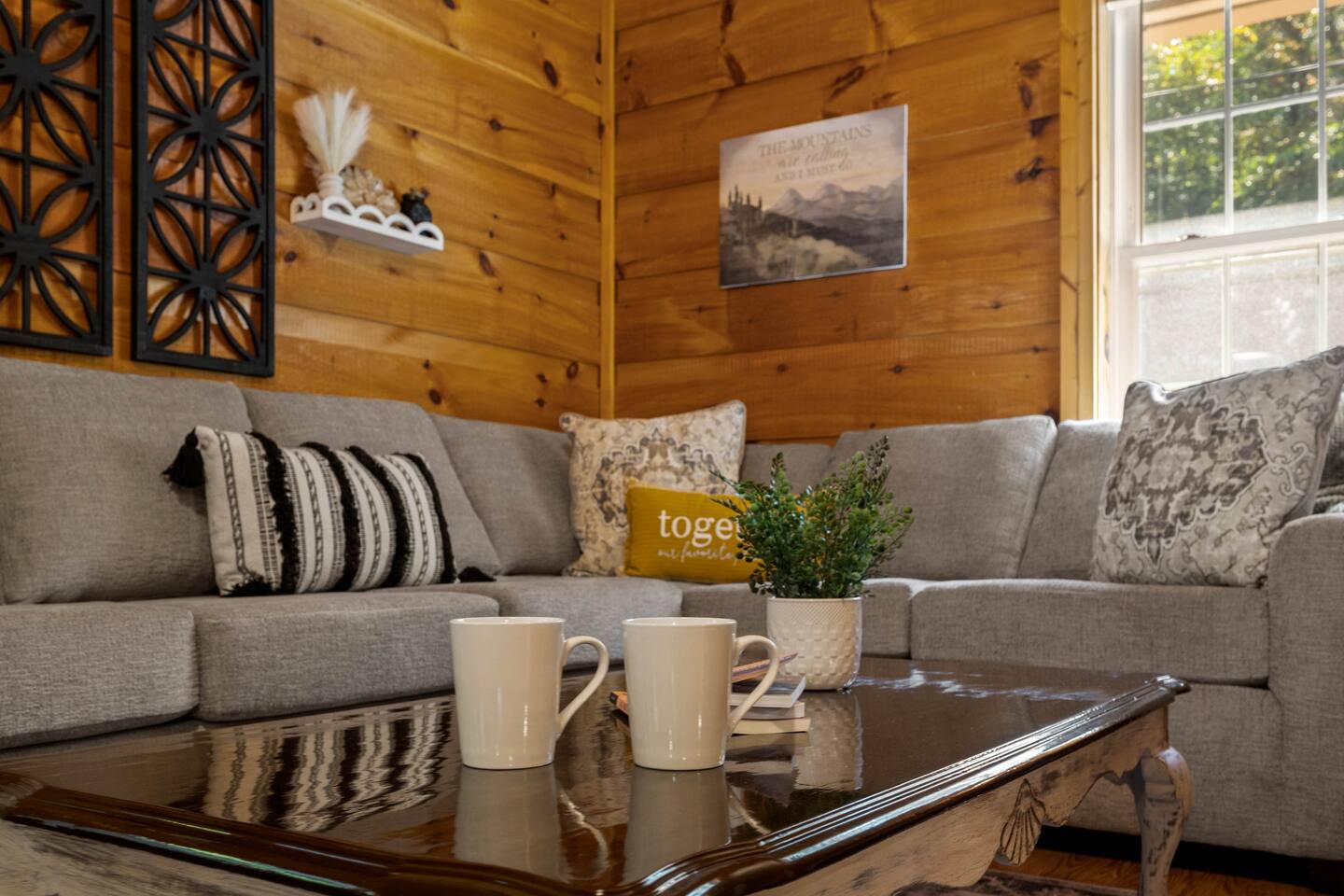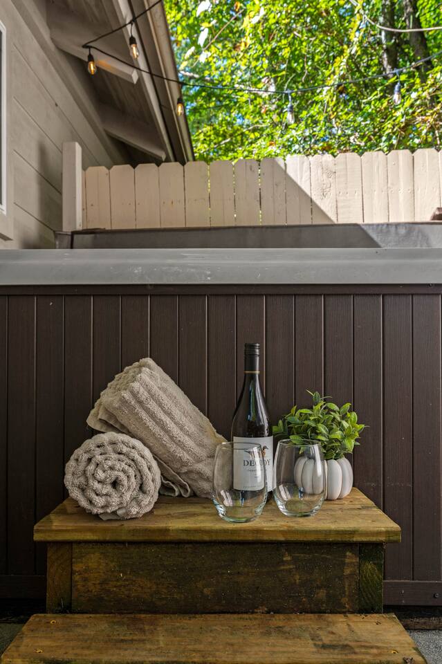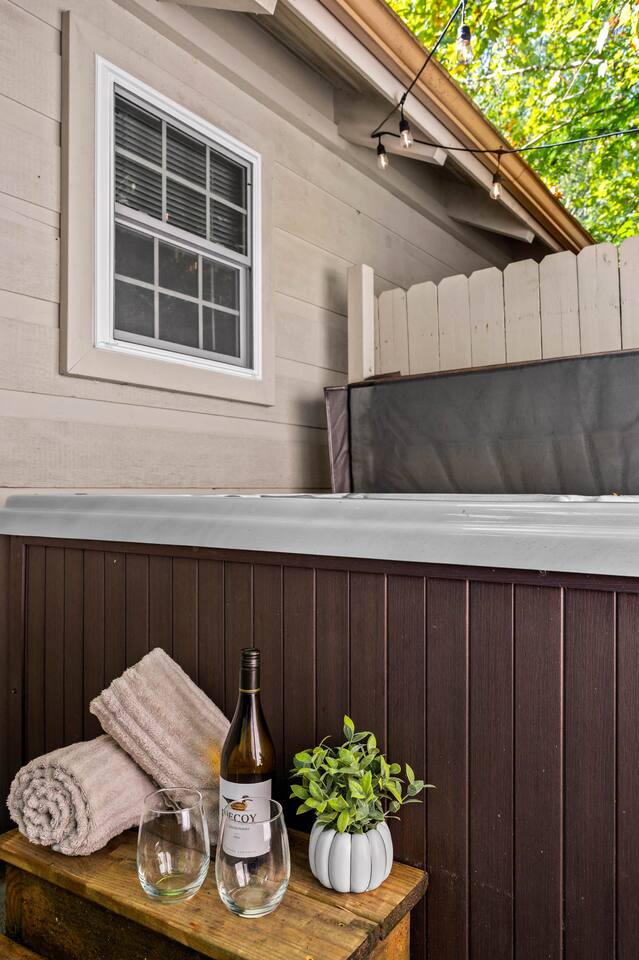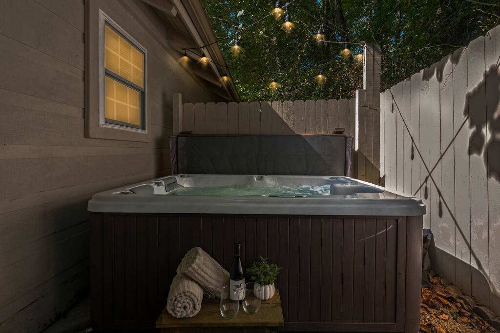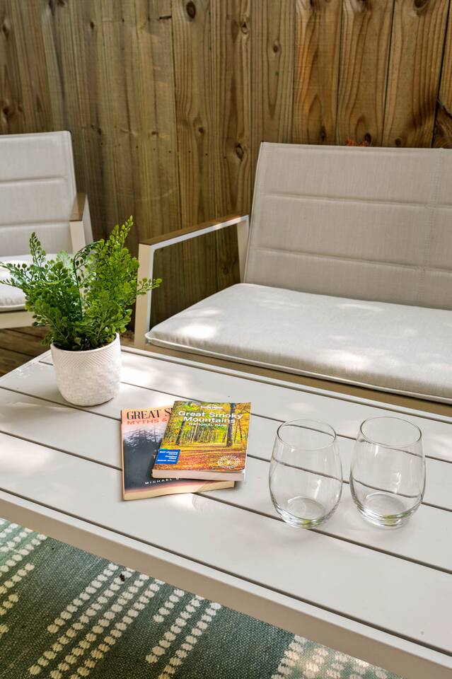 * 5.5 miles to Great Smoky Mountains National Park * 3.5 miles to Downtown Gatlinburg * 11 miles to Dollywood * Lush King Bed * Private Backyard (Seating, BBQ, + Hot Tub) * Central AC + Heat * Fully Equipped Kitchen (w/ Coffee pot, French Press, + Hot Water Kettle) * Large Jetted Tub * FREE parking * Pull-out (sectional) Couch * Double-sided Fireplace * In unit washer/dryer * Smart TVs * Free Wifi * Board Games