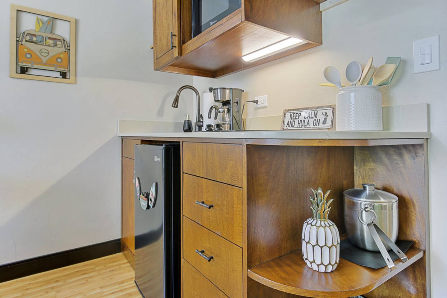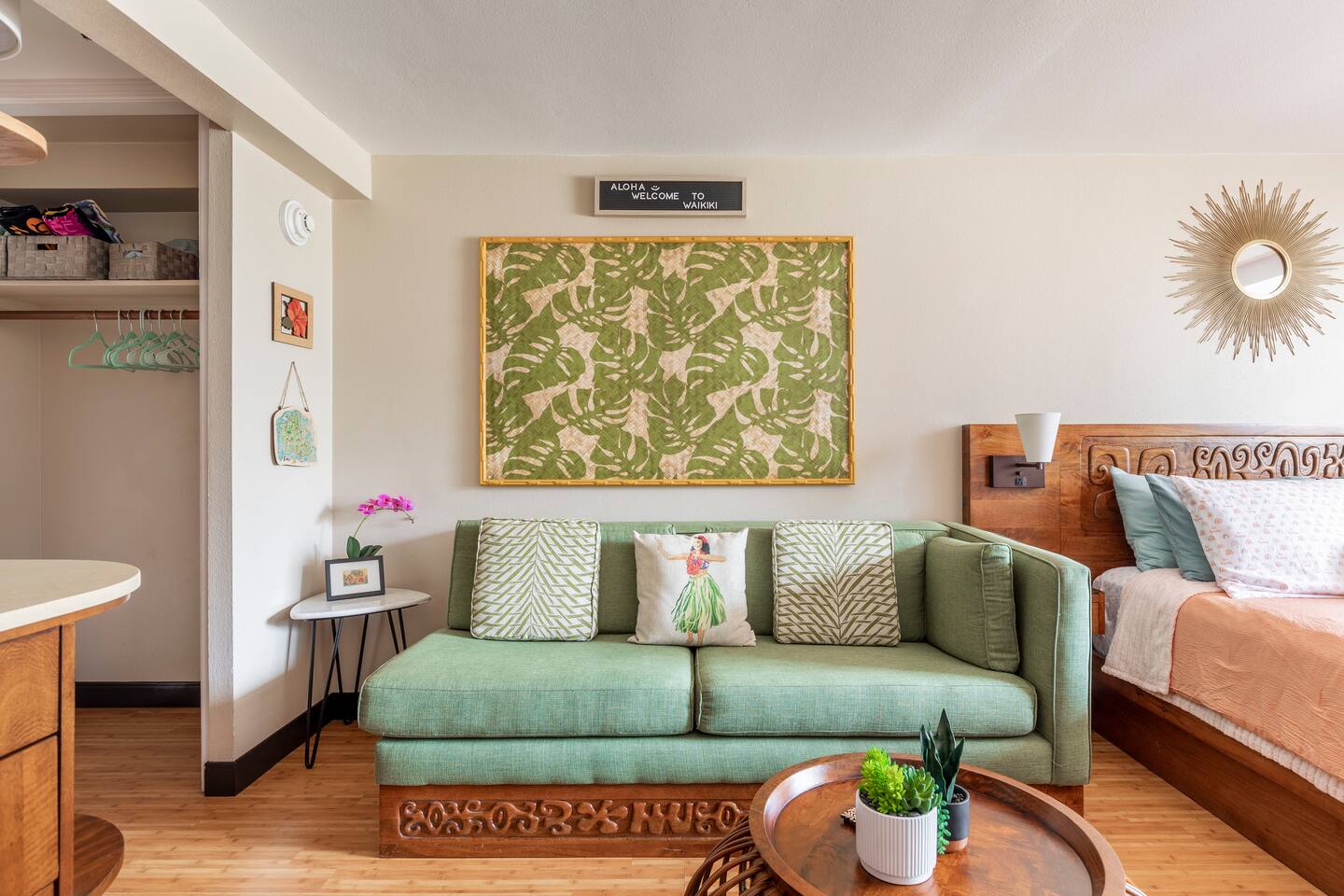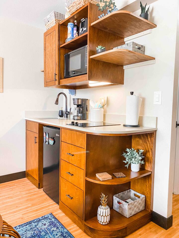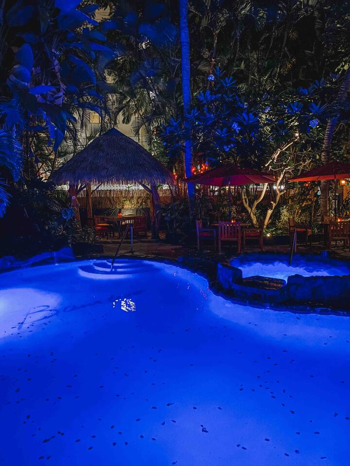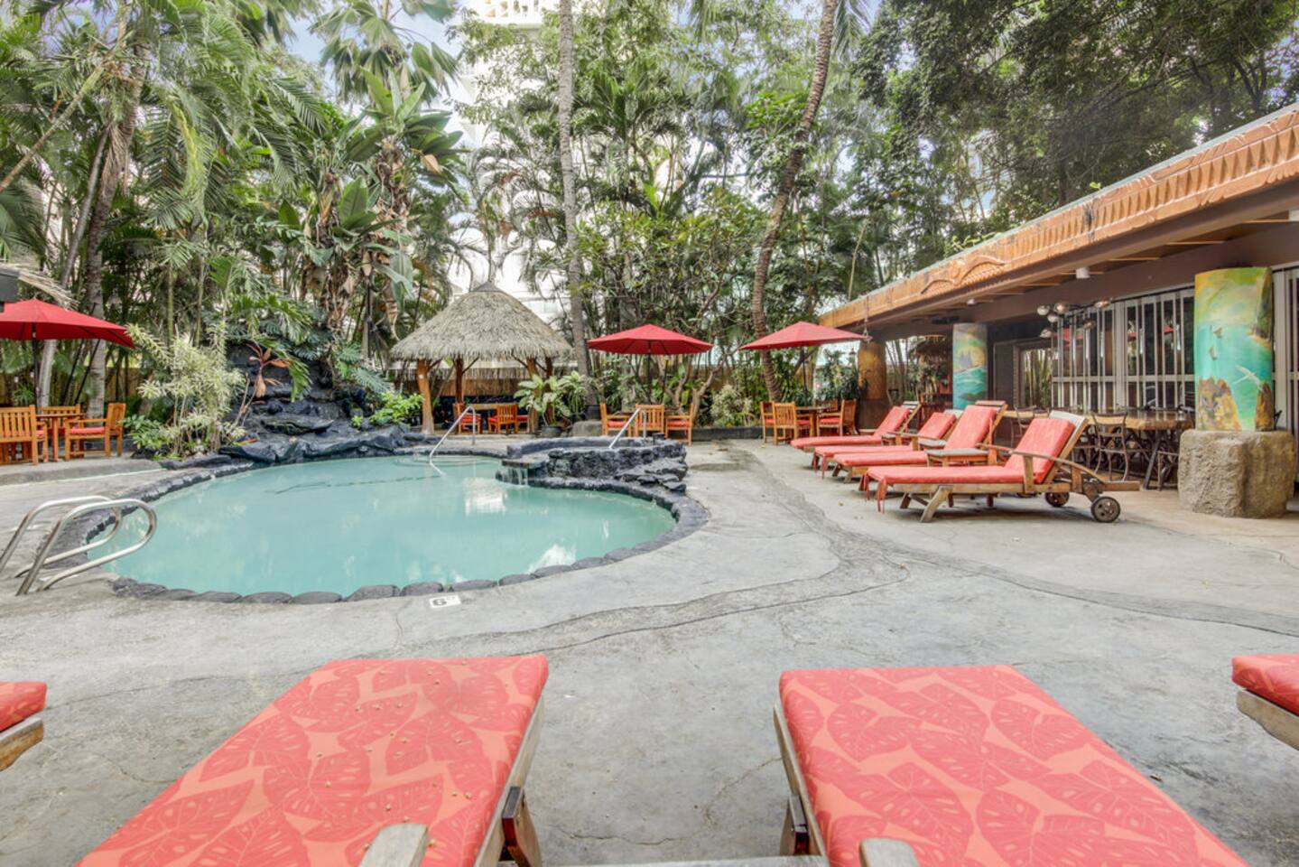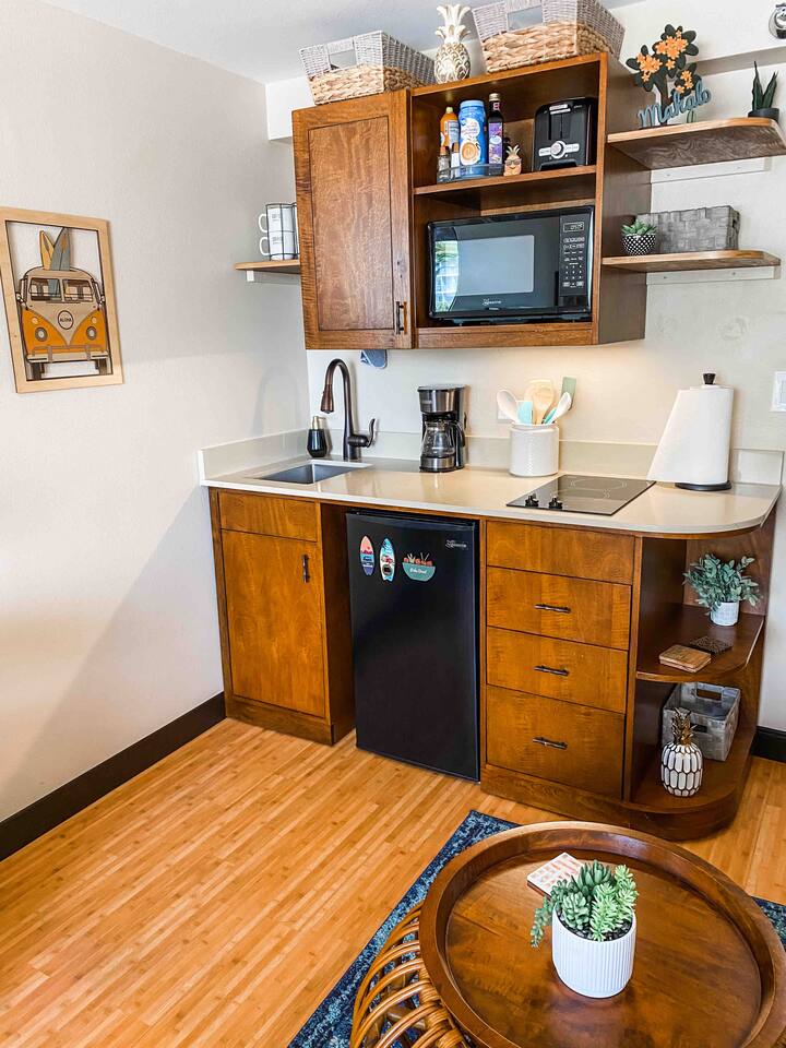 ✔ To easily re-access this listing or make sharing with your group easier, add this listing to your wishlist by clicking the <3 in the upper-right corner. This boutique condo is just 1½ blocks to the pristine sands of Waikiki Beach! Newly renovated studio with a fully equipped kitchenette, and city views from the private lanai. The ideal location and beach themed decor make this vacation retreat one you don't want to miss. Enjoy the restaurant downstairs, next to the tropical tiki themed pool and hot tub! Mere steps to beachfront shops, restaurants, and a quick walk to the iconic Waikiki beach with crystal clear waters! You will enjoy new central AC, Free WiFi, flat screen tv, dual burner top, coffee pot, air-fryer, toaster, microwave, cooking essentials, beach towels, and more. Walking distance to Kalakaua Ave shops, Waikiki beach, Honolulu Zoo, and Diamond Head Mountain. This condo is a fun hideaway adorned with Tiki theme décor. Charming island esthetic surrounds the condo immersing you in a unique Hawaiian experience. Lush tropical trees surround the private outdoor pool, jacuzzi, and waterfall restaurant area. Use the bbq on-site, near the pool, or explore all the surrounding options for dining, shopping and outdoor activities. Located on Kūhiō Ave, mere steps from the International Market Place. On-site Parking is available with the building. Available for an additional $35/day, and is first come first serve.